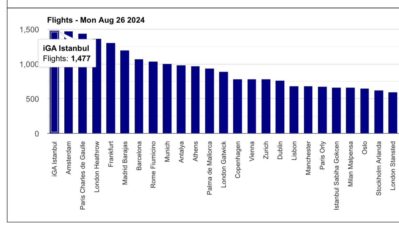 EUROCONTROL tarafından, 21 Ağustos 2024 tarihinde yayımlanan Avrupa Havacılık Genel Bakış Raporu’nda yer alan “12 – 18 Ağustos 2024” dönemi hava trafik istatistiklerine göre İGA, zirvedeki yerini korudu.