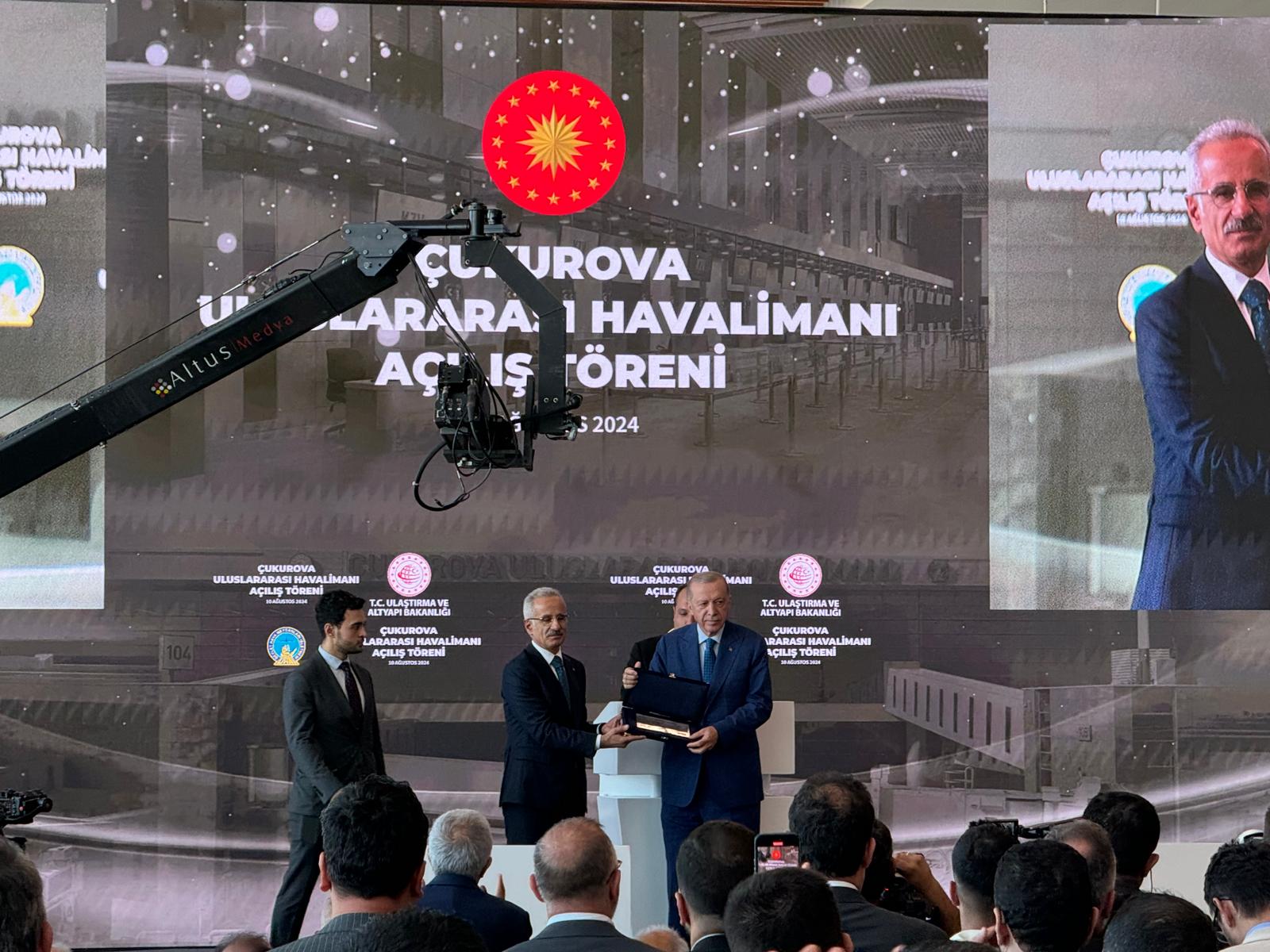 Çukurova Uluslararası Havalimanı’nın açılış töreninde Cumhurbaşkanı Recep Tayyip Erdoğan, “ Akdeniz’de yaşayan tüm kardeşlerimizin benimseyeceği bir yaklaşımla Çukurova Havalimanımız inşa edildi. Son yıllarda ülkemize kazandırdığımız pek çok eseri kamu özel olarak tamamlıyoruz” dedi.