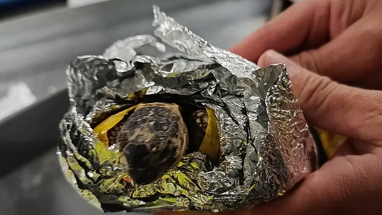 Münih Havalimanı’nda yapılan bir kontrolde, gümrük memurları bir yolcunun bavulunda yedi canlı Tunus kara kaplumbağası keşfetti.