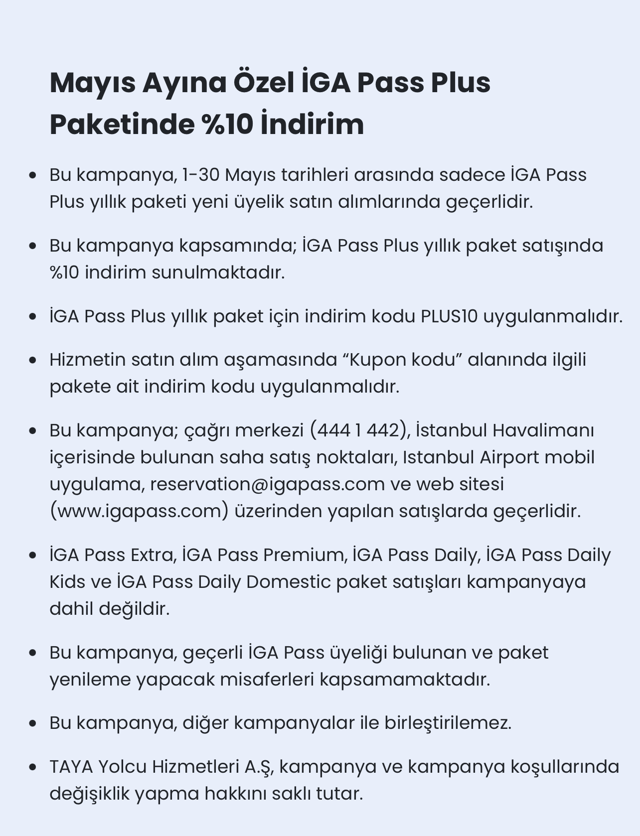 Kampanya: İGA Pass Plus Paketi – Mayıs Ayına Özel %10 İndirim