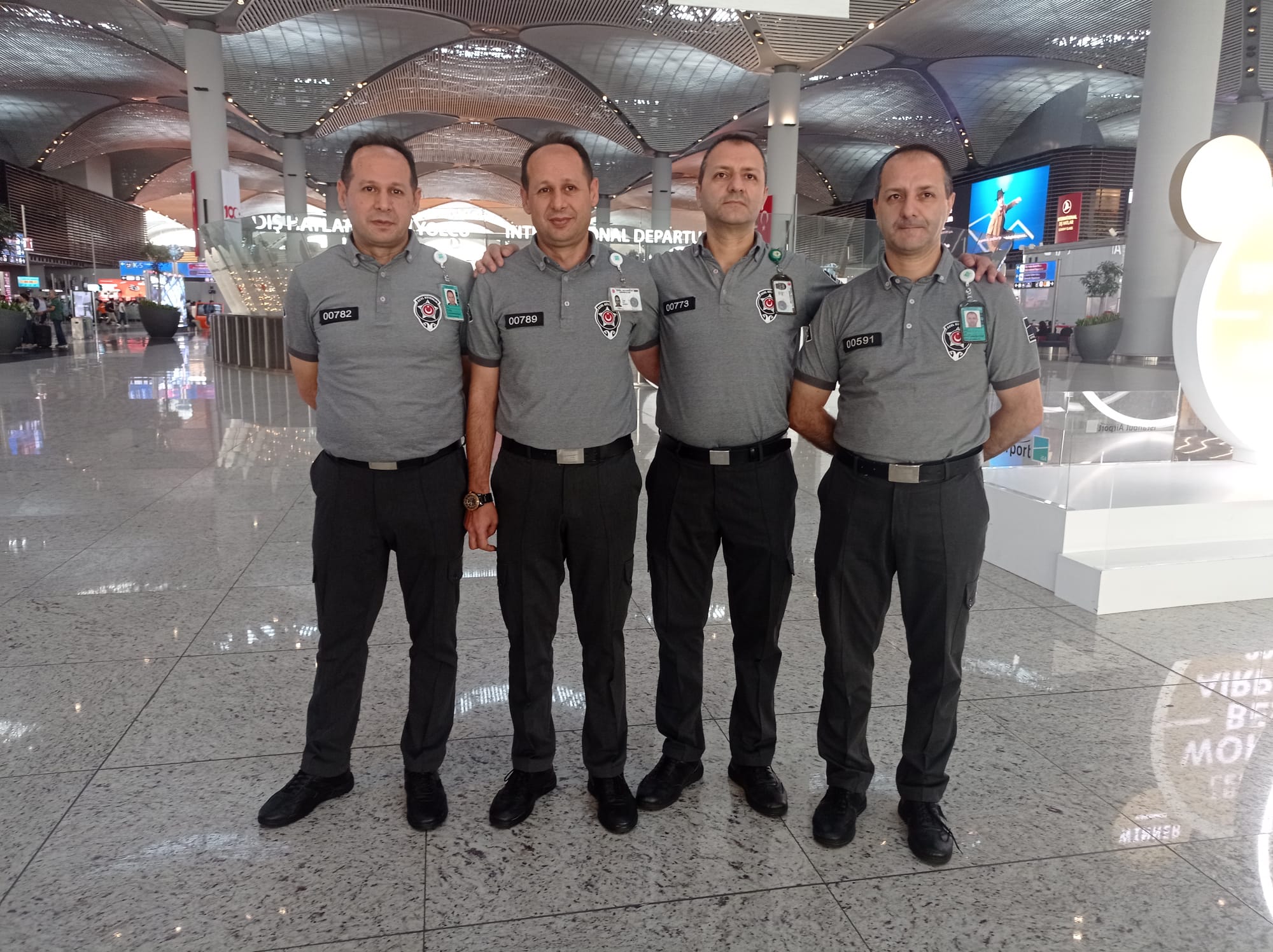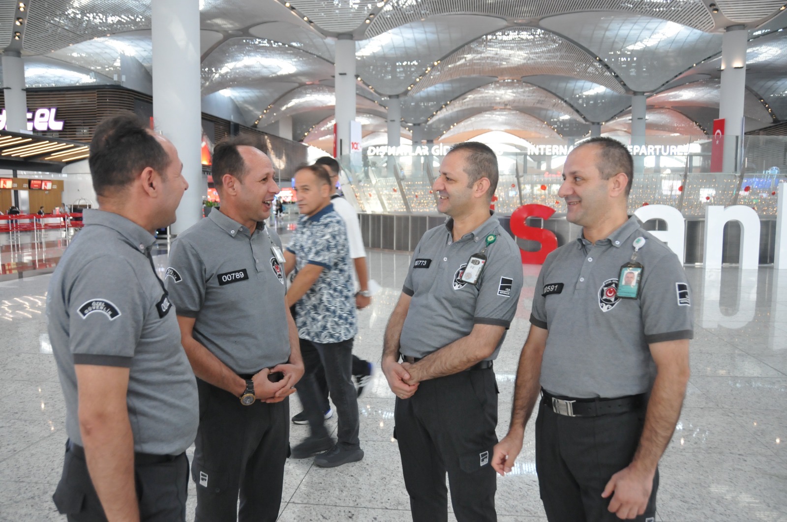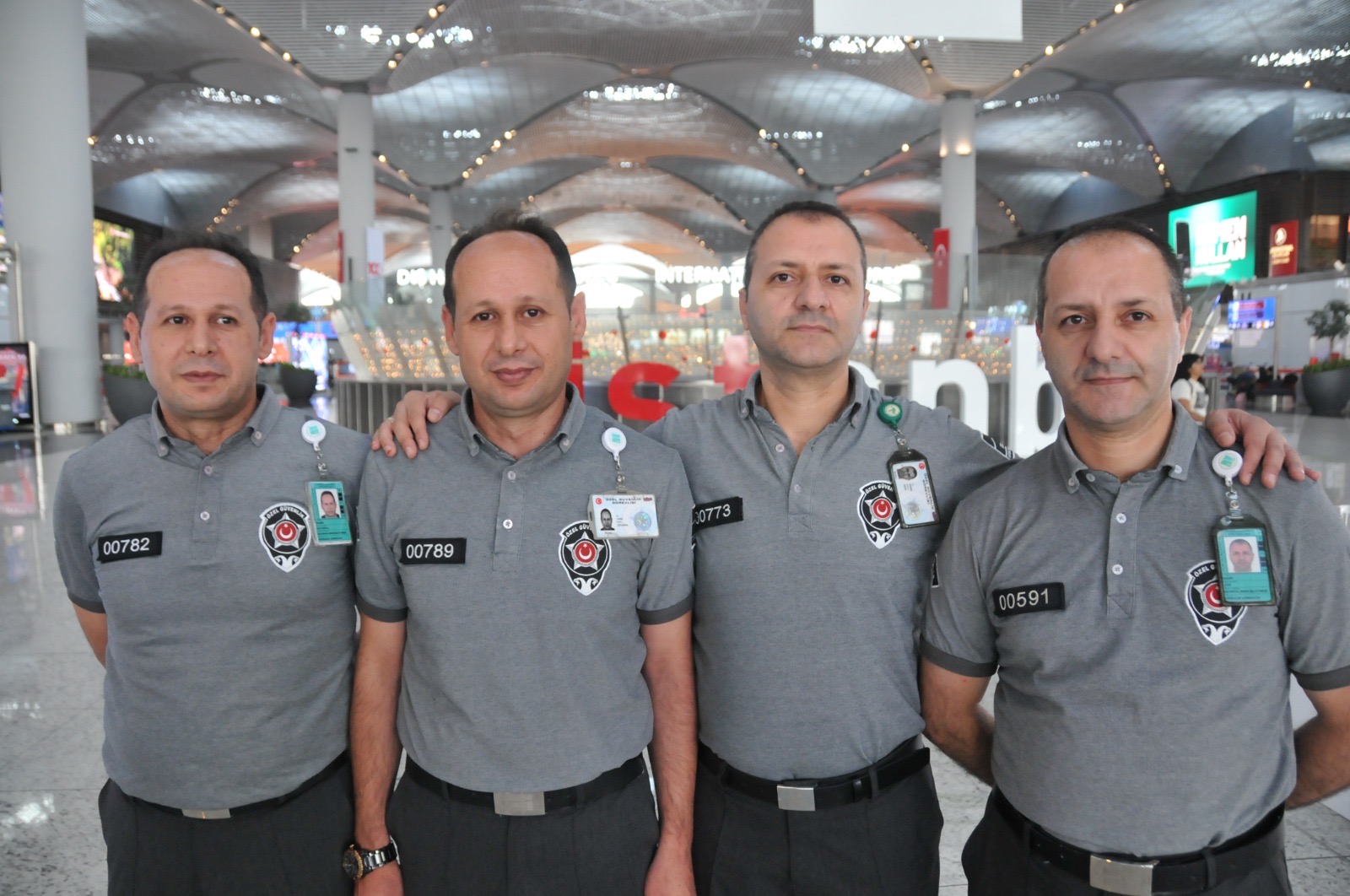 İGA İstanbul Havalimanı’nda güvenlik görevlisi olarak çalışan tek yumurta ikizleri Enver ve Ekrem Eser ile Tahsin ve Yasin Ertuğrul kardeşleri gören yolcular şaşkınlıklarını gizleyemiyor.