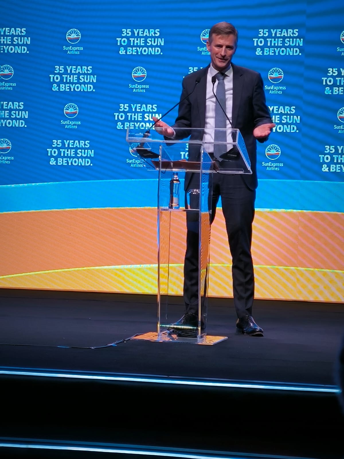 Güneş ve Ötesine 35 Yıl” temalı özel konferansta açıklamalarda bulunan CEO’su Max Kownatzki, SunExpress’in hikayesi 35 yıl önce, Frankfurt ve Antalya arasında tek bir uçakla gerçekleştirilen charter uçuşlarla başladığını, Bugün ise 150 milyondan fazla yolcunun hizmet ederek ‘Avrupa’nın En İyi Tatil Hava Yolu’ unvanını sahip olduklarını söyledi.